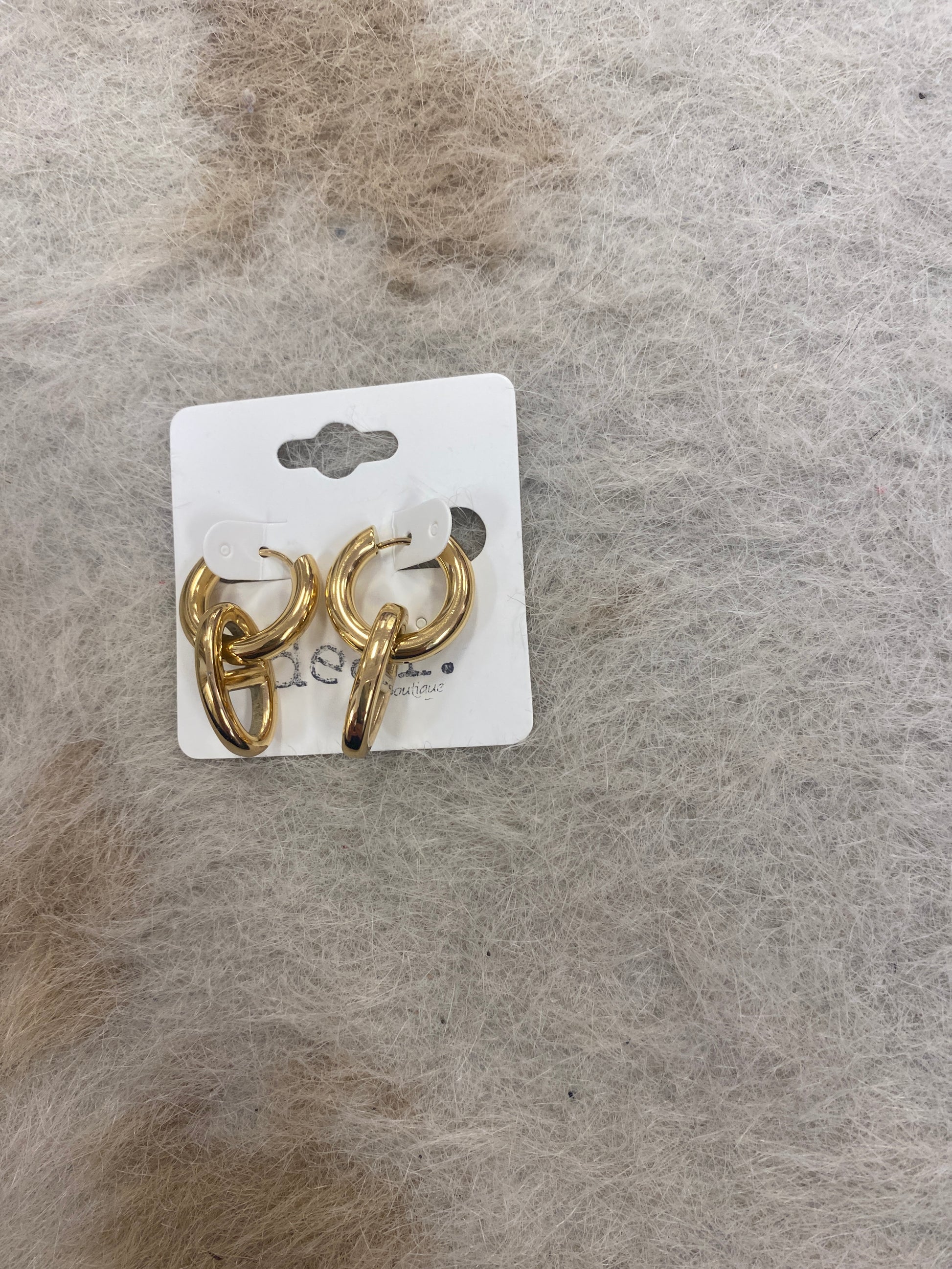The Misty Earring is s gold hoop with an addition hanging apparatus adding dimension to the earring!